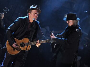 Photos: Neil Young through the years 2011: Inductee Tom Waits and Neil Young perform onstage at the 26th annual Rock and Roll Hall of Fame Induction Ceremony at the Waldorf-Astoria on March 14, 2011, in New York City. (Michael Loccisano/Getty Images)