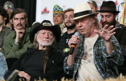 Photos: Neil Young through the years 2009: Willie Nelson and Neil Young attends the press conference for Farm Aid 2009 at the Verizon Wireless Amphitheater on October 4, 2009, in St. Louis. (Taylor Hill/Getty Images)