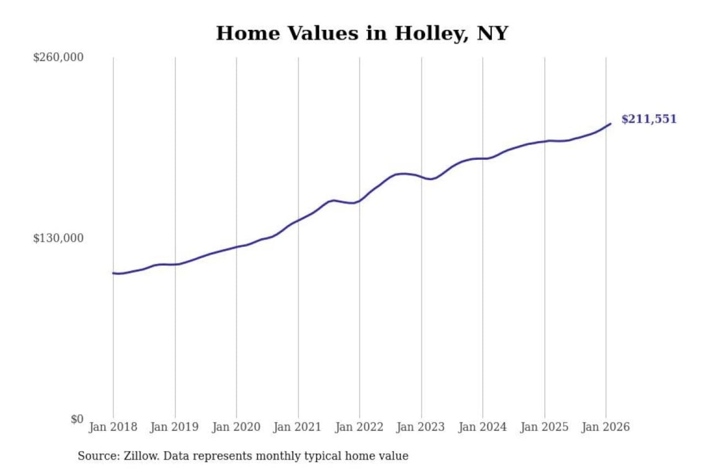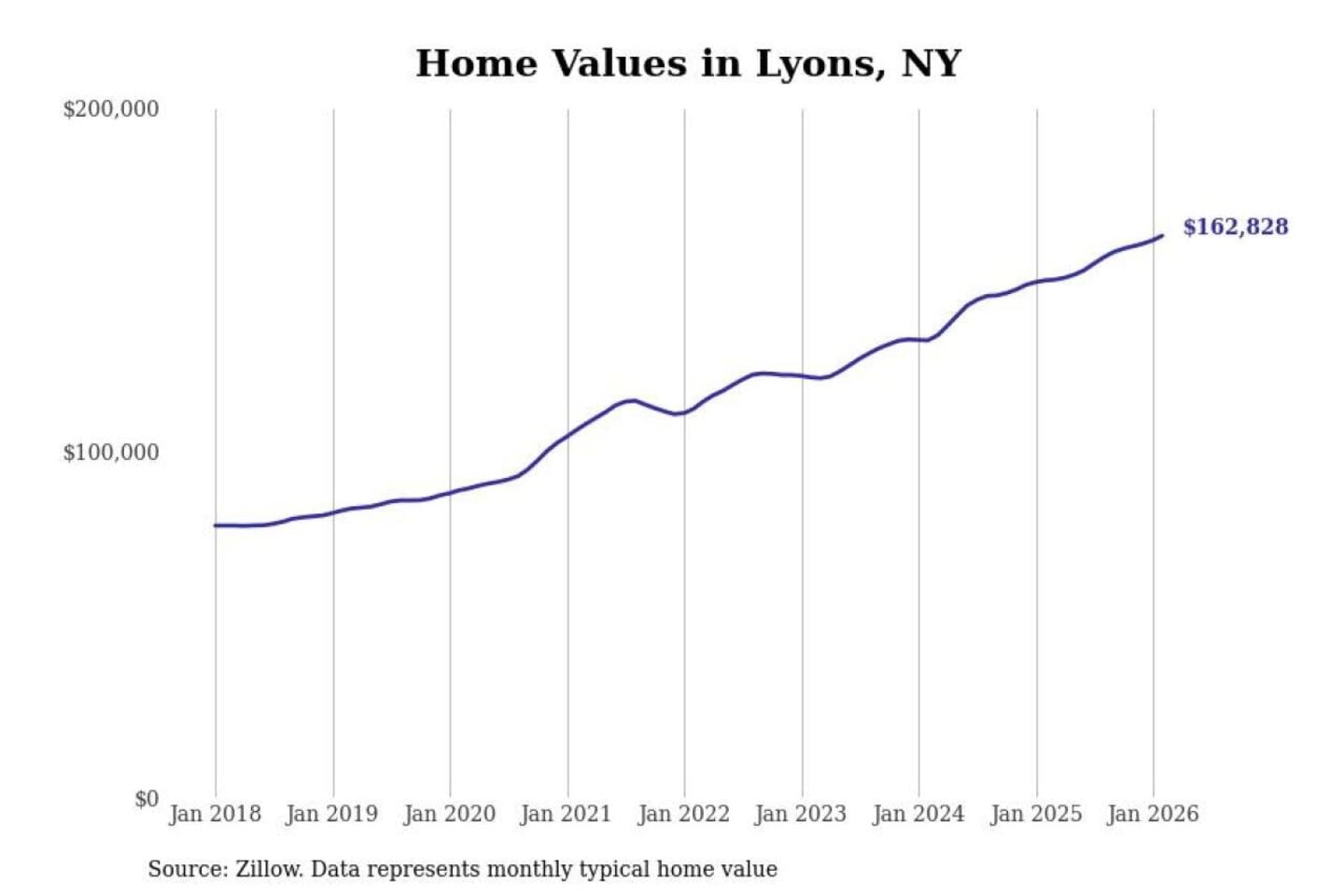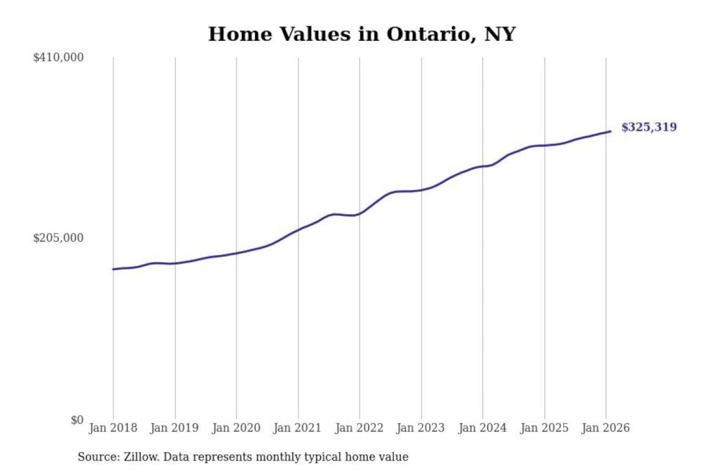 Stacker compiled a list of cities with the most expensive homes in the Rochester, NY metro area using data from Zillow. Charts show the monthly typical home value since January 2018.