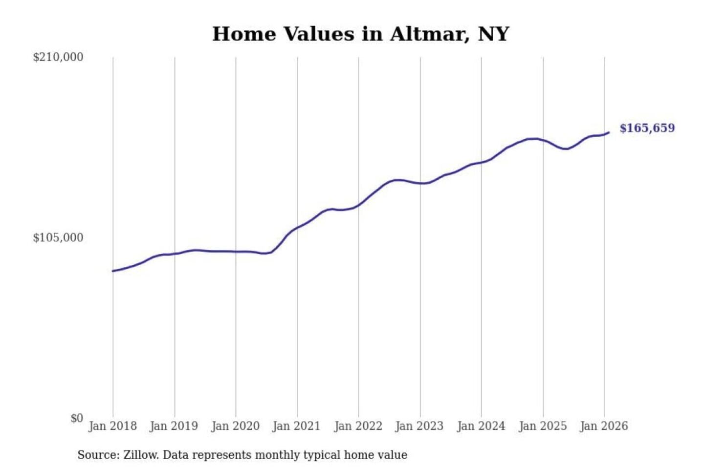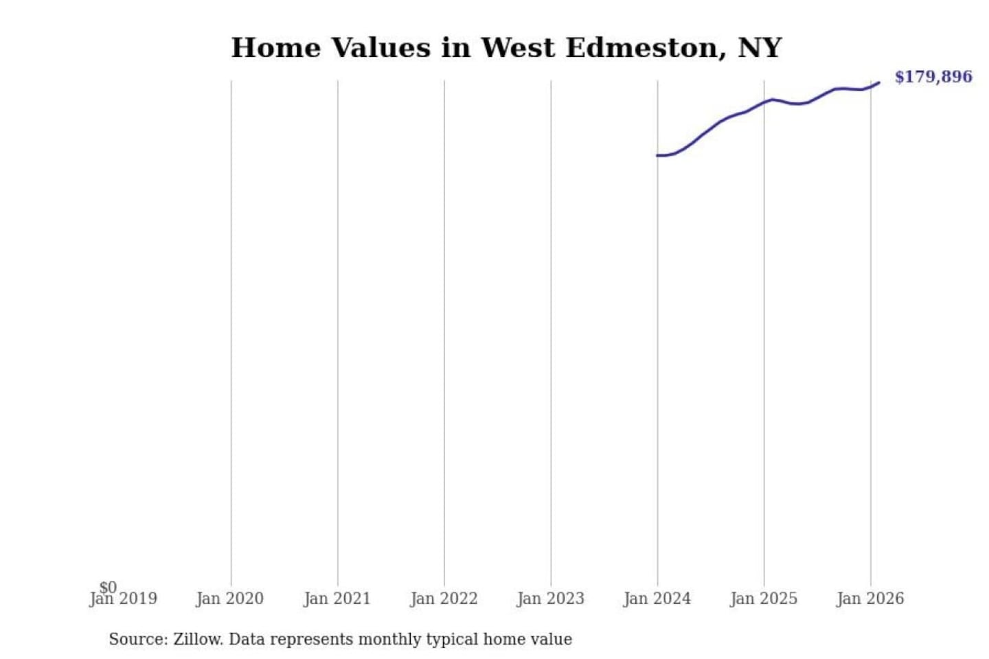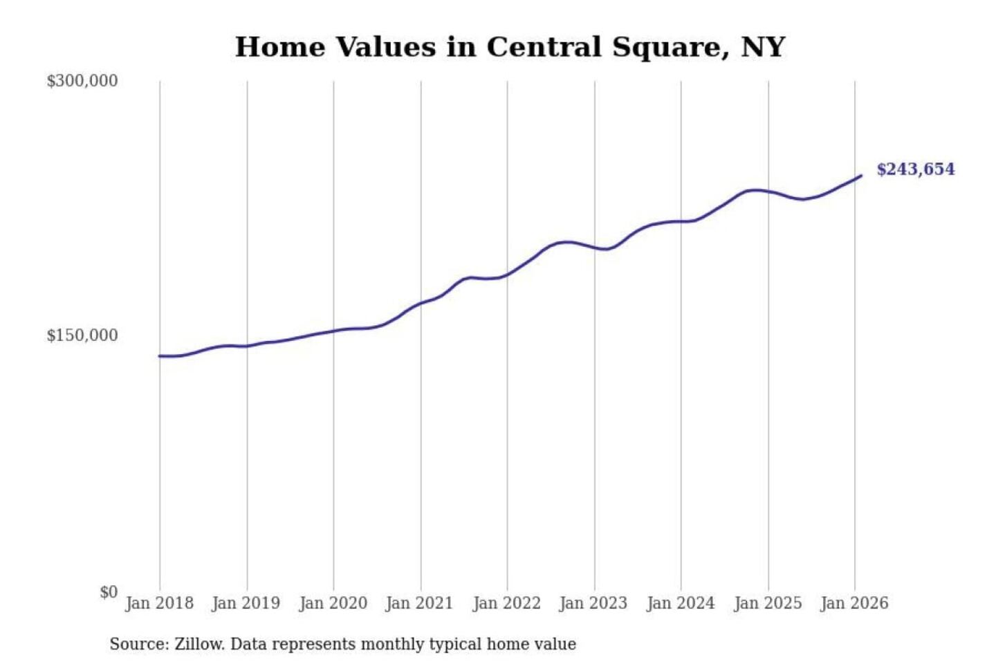 Stacker compiled a list of cities with the most expensive homes in the Syracuse, NY metro area using data from Zillow. Charts show the monthly typical home value since January 2018.