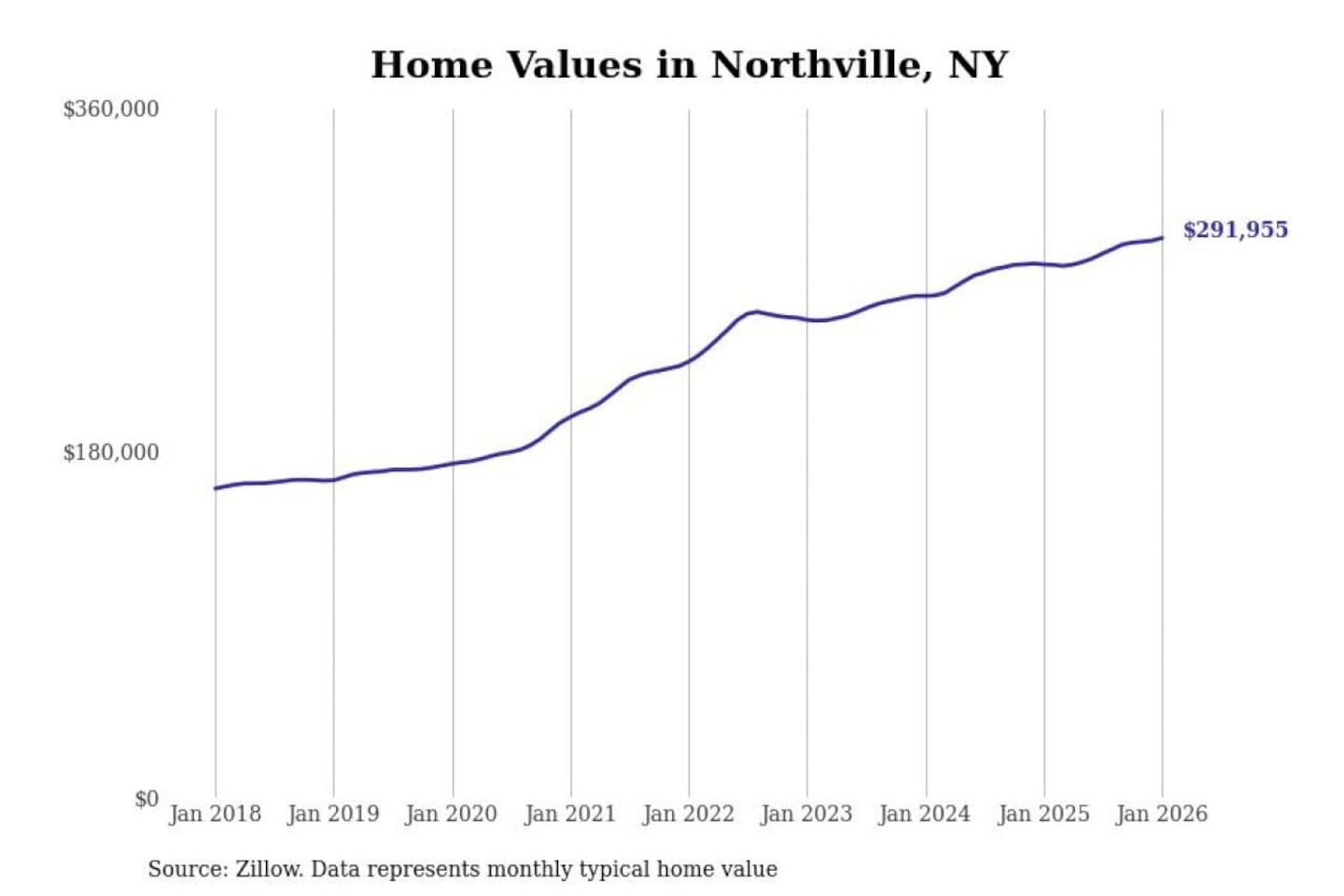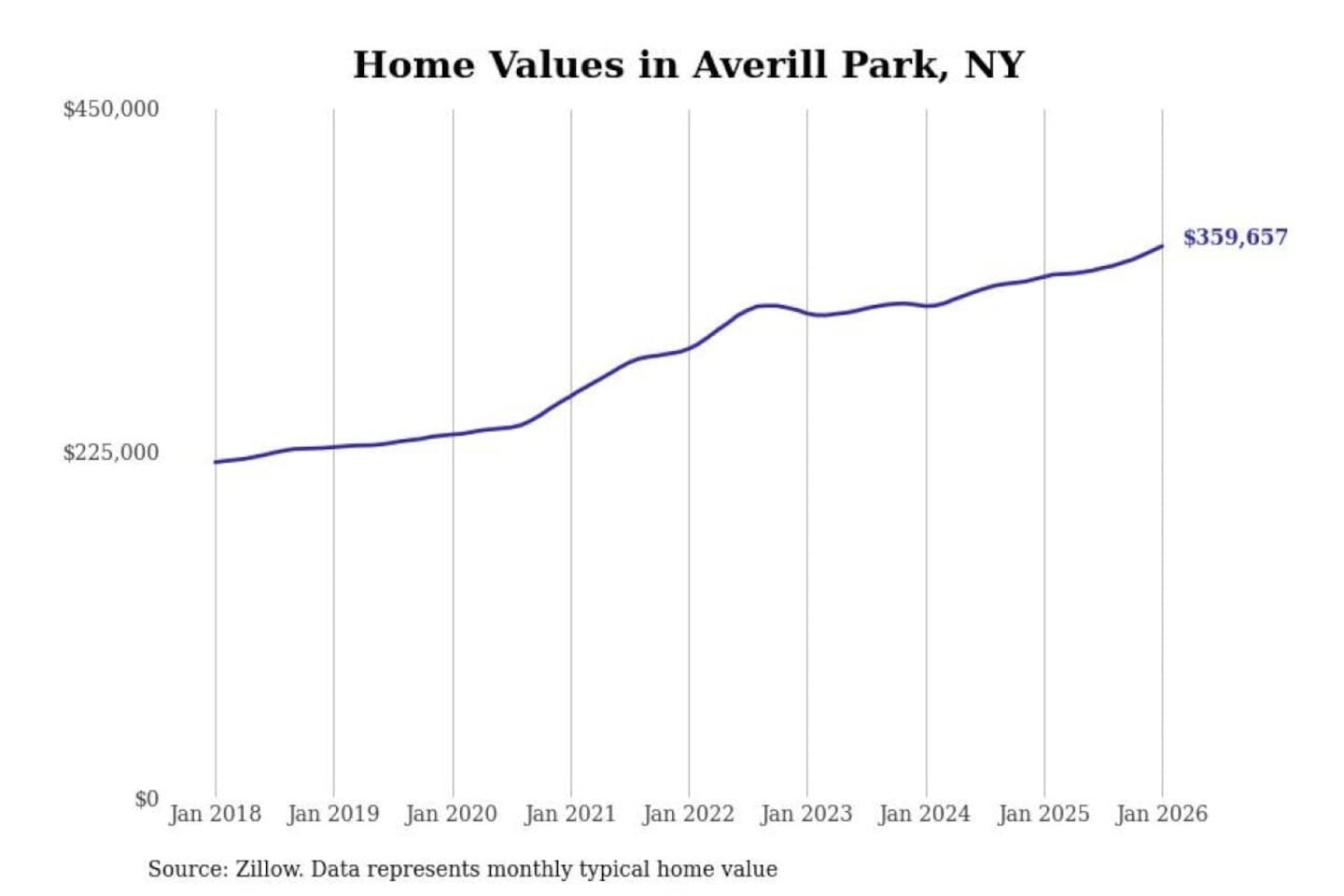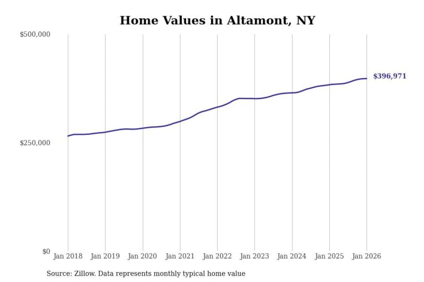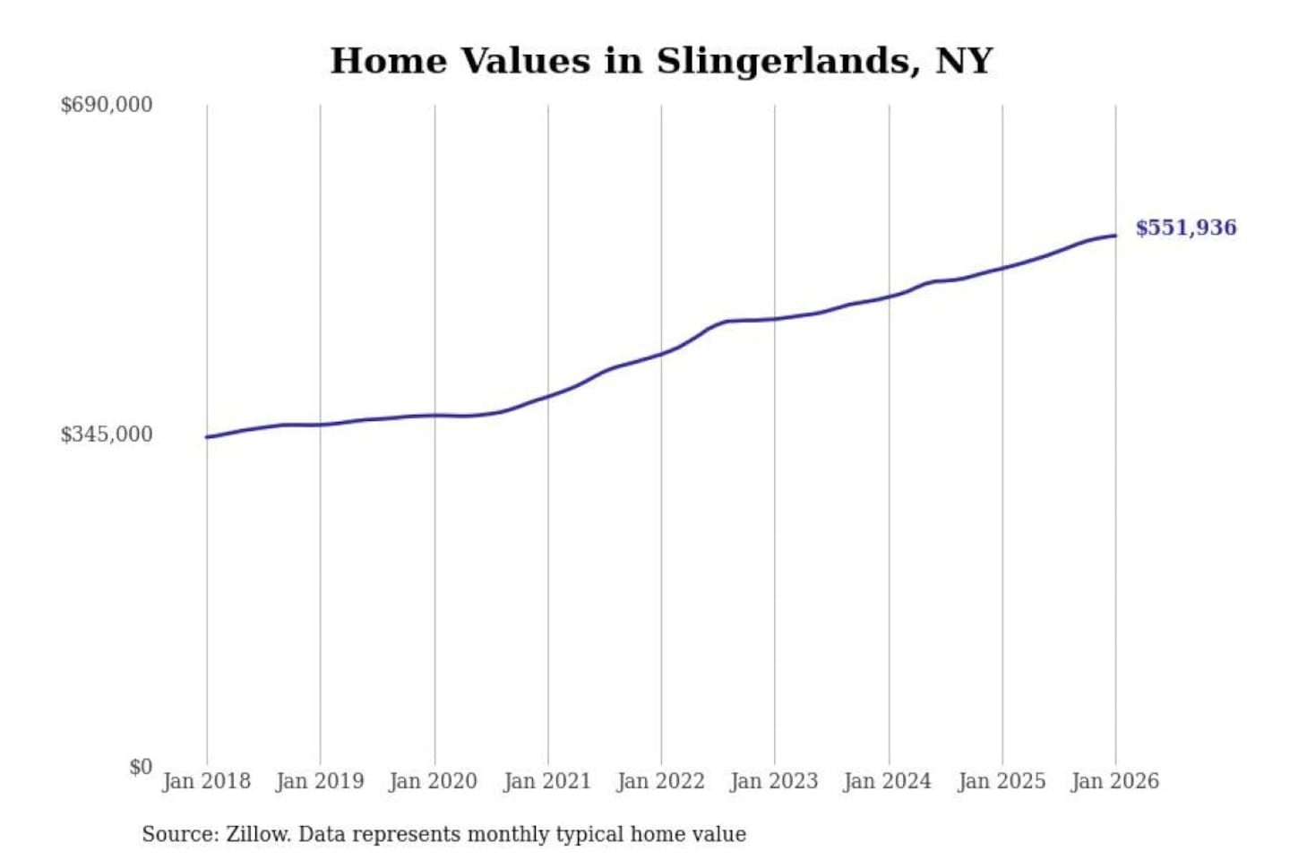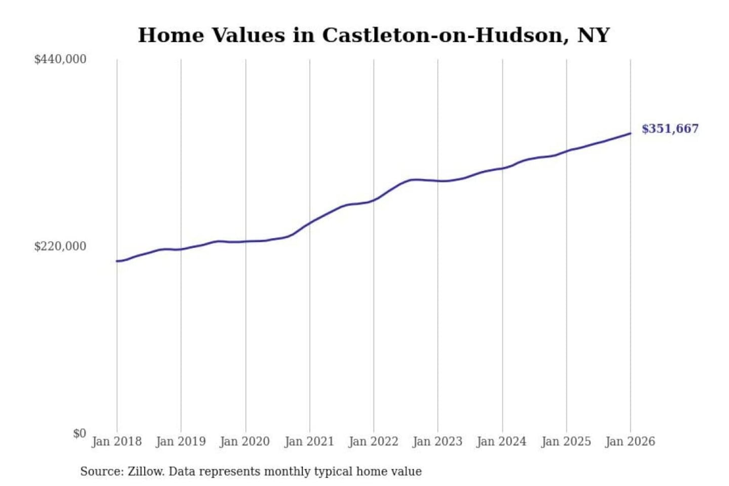 Stacker compiled a list of cities with the most expensive homes in the Albany-Schenectady-Troy, NY metro area using data from Zillow. Charts show the monthly typical home value since January 2018.