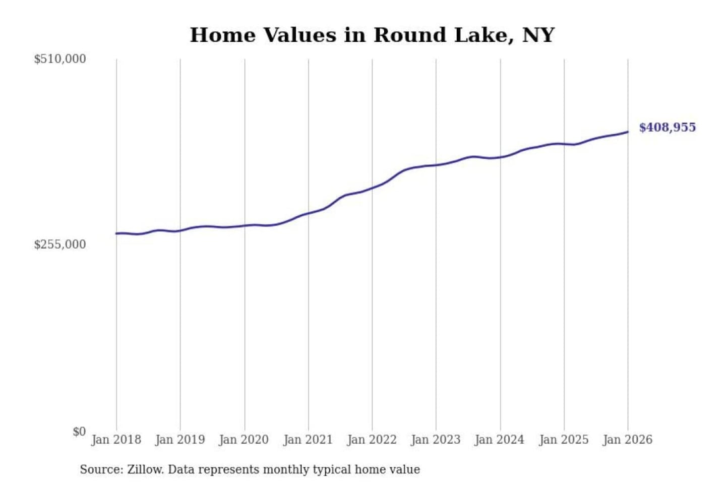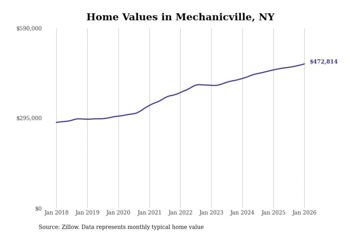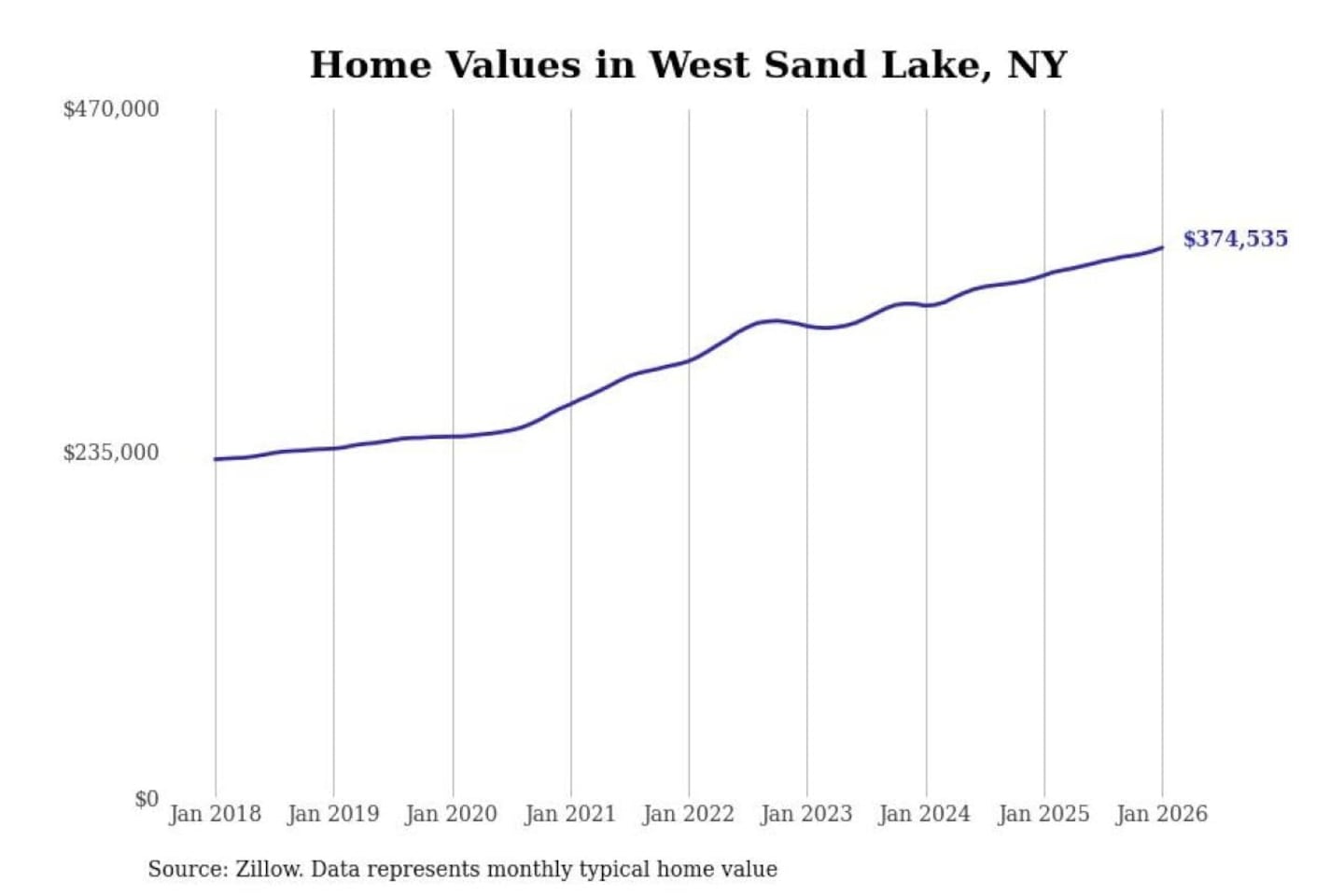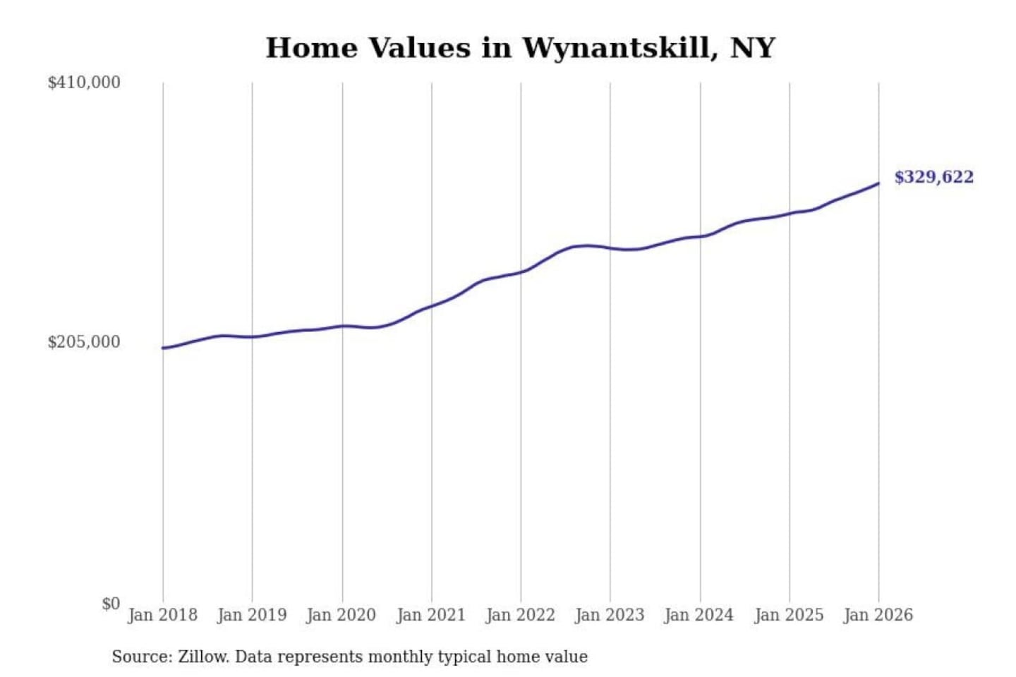 Stacker compiled a list of cities with the most expensive homes in the Albany-Schenectady-Troy, NY metro area using data from Zillow. Charts show the monthly typical home value since January 2018.