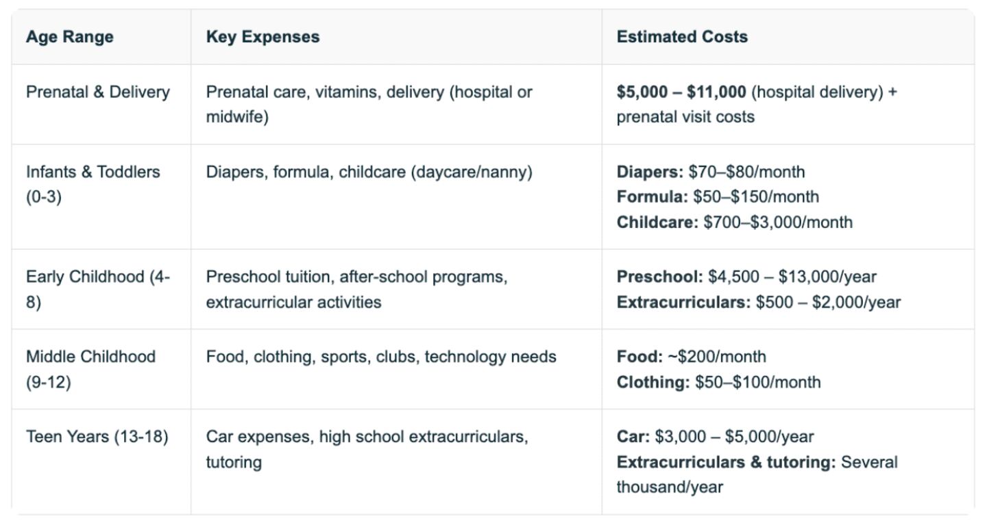 From Diapers to Driving Lessons: Cost by Age