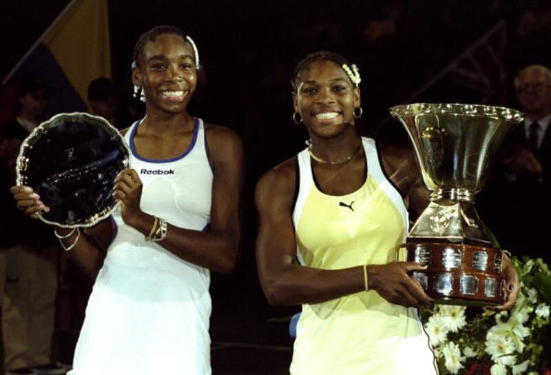 Photos: Venus Williams through the years 1999: Venus and Serena Williams of the USA show off their respective trophies at the Grand Slam Cup from the Olympiahalle, Munich, Germany, on Oct. 3, 1999. (Clive Brunskill/Allsport via Getty Images)