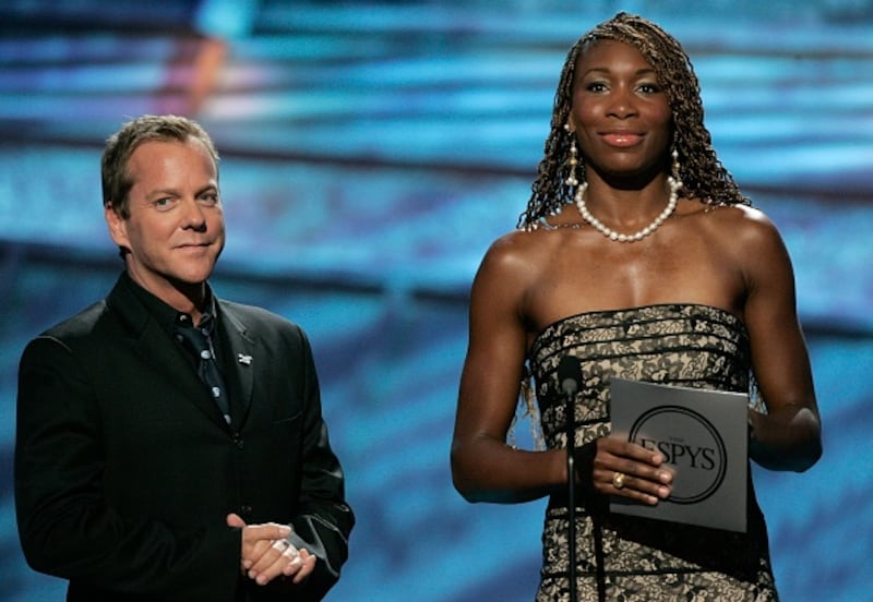 Photos: Venus Williams through the years 2006: Actor Kiefer Sutherland and tennis player Venus Williams present the award for "Record Breaking Performance" at the 2006 ESPY Awards at the Kodak Theatre on July 12, 2006, in Hollywood, California. (Kevin Winter/Getty Images)