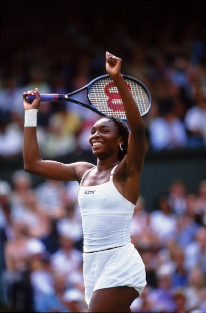 Photos: Venus Williams through the years 2002: Venus Williams celebrates during the Women's Singles Event of the Lawn Tennis Championships at the All England Club in Wimbledon, London, on July 4, 2002. Venus Williams won the match 6-3, 6-2. (Clive Brunskill/Getty Images)