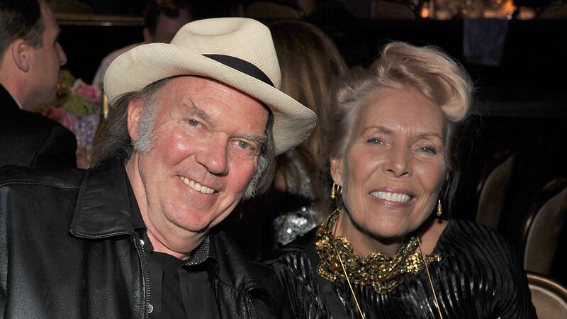 Joni Mitchell through the years 2012: Singers Neil Young and Joni Mitchell attend Clive Davis and The Recording Academy's 2012 Pre-GRAMMY Gala and Salute to Industry Icons Honoring Richard Branson at the Beverly Hilton hotel on February 11, 2012 in Beverly Hills, California. (Lester Cohen/WireImage, File)