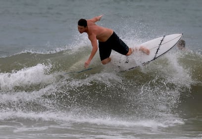 Idalia impact: A surfer navigates the waves at St. Petersburg Beach as Hurricane Idalia moved up Florida's west coast on Tuesday. (Joe Raedle/Getty Images)