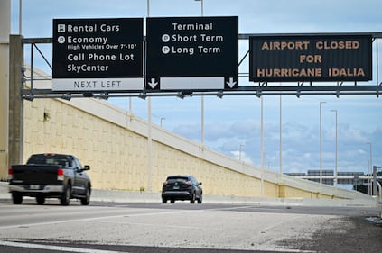 Idalia impact: A sign informs travelers that Tampa International Airport is closed on Tuesday as Hurricane Idalia approached the area. (MIGUEL J. RODRIGUEZ CARRILLO/Miguel J. Rodriguez Carrillo/AFP)
