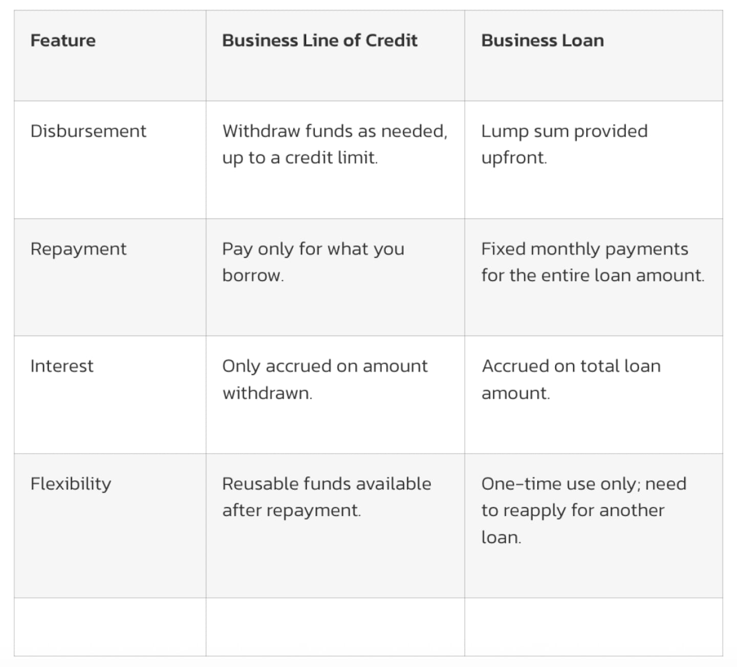 Both types of business lines of credit can provide valuable flexibility, allowing you to draw funds when needed to manage cash flow, cover unexpected expenses, or seize growth opportunities.