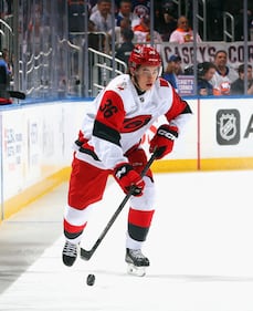 Carolina Hurricanes v New York Islanders ELMONT, NEW YORK - APRIL 14: Joel Nystrom #64 of the Carolina Hurricanes skates against the New York Islanders at UBS Arena on April 14, 2026 in Elmont, New York. (Photo by Bruce Bennett/Getty Images) (Bruce Bennett/Getty Images)