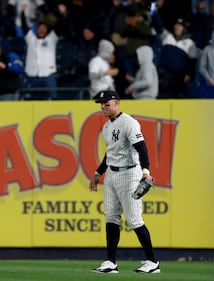 Athletics v New York Yankees NEW YORK, NEW YORK - APRIL 07: Aaron Judge #99 of the New York Yankees takes the field to start the game against the Athletics at Yankee Stadium on April 07, 2026 in the Bronx borough of New York City. (Photo by Elsa/Getty Images) (Elsa/Getty Images)