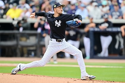 Atlanta Braves v New York Yankees TAMPA, FLORIDA - FEBRUARY 26: Carlos Carrasco #59 of the Atlanta Braves delivers a pitch in the first inning against the New York Yankees during a Grapefruit League spring training game at George M. Steinbrenner Field on February 26, 2026 in Tampa, Florida. (Photo by Julio Aguilar/Getty Images) (Julio Aguilar/Getty Images)